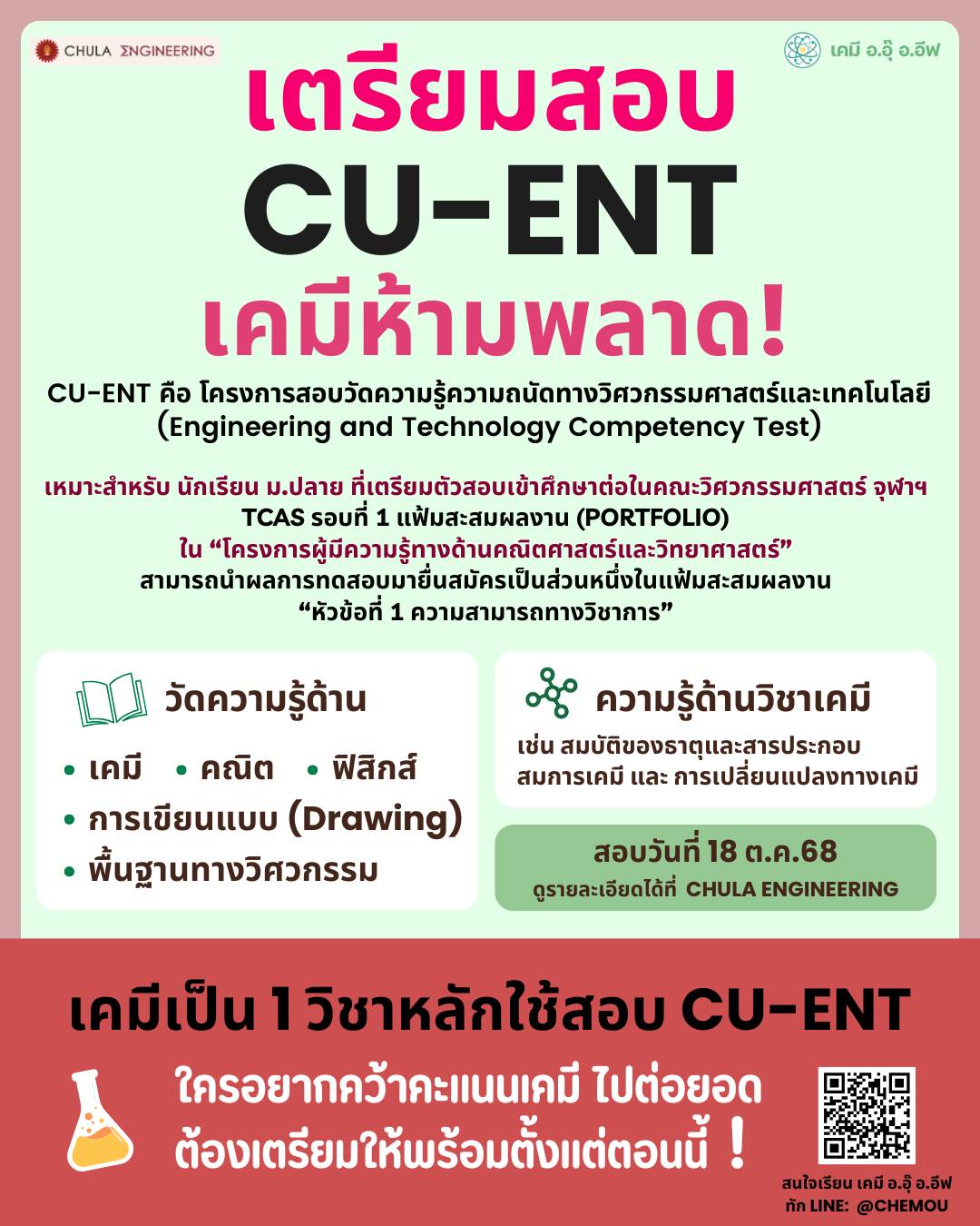 ดูรายละเอียด CU-ENT ได้ที่ https://www.eng.chula.ac.th/th/56763