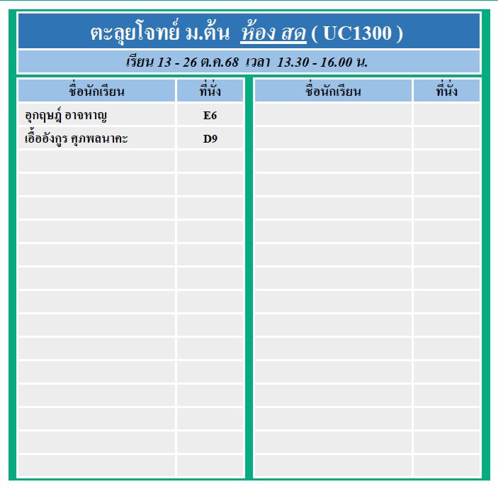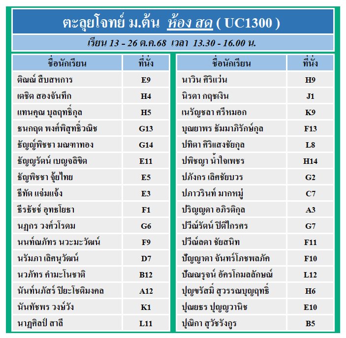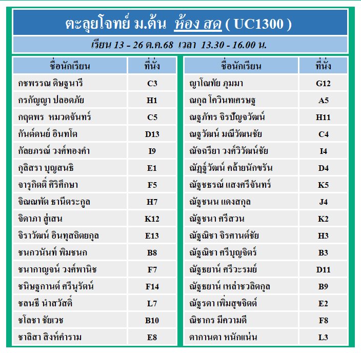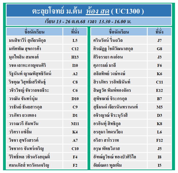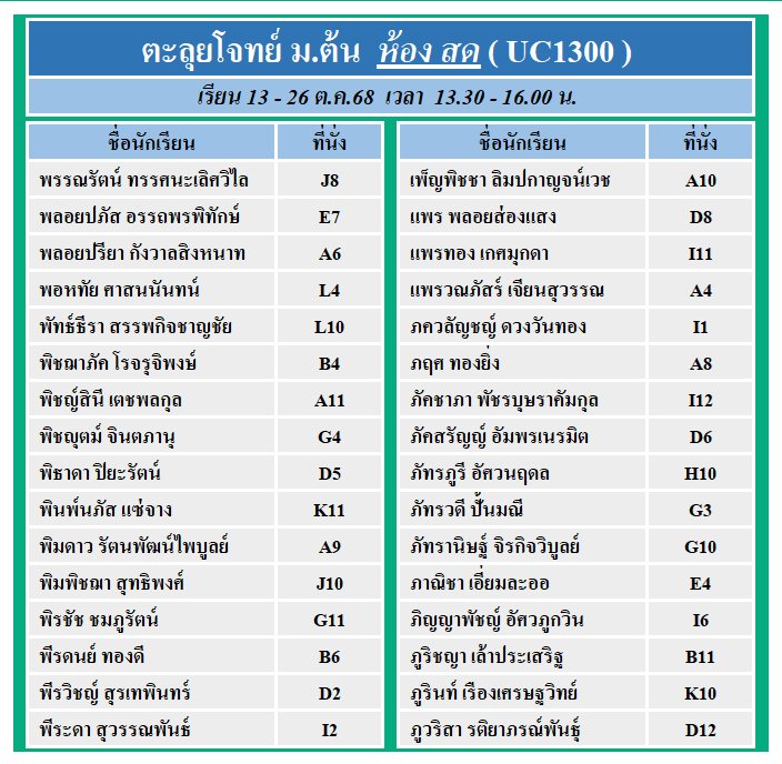 ประกาศ!! รายชื่อและเลขที่นั่งรอบ #สอนสด คอร์ส ตะลุยโจทย์ ม.ต้น