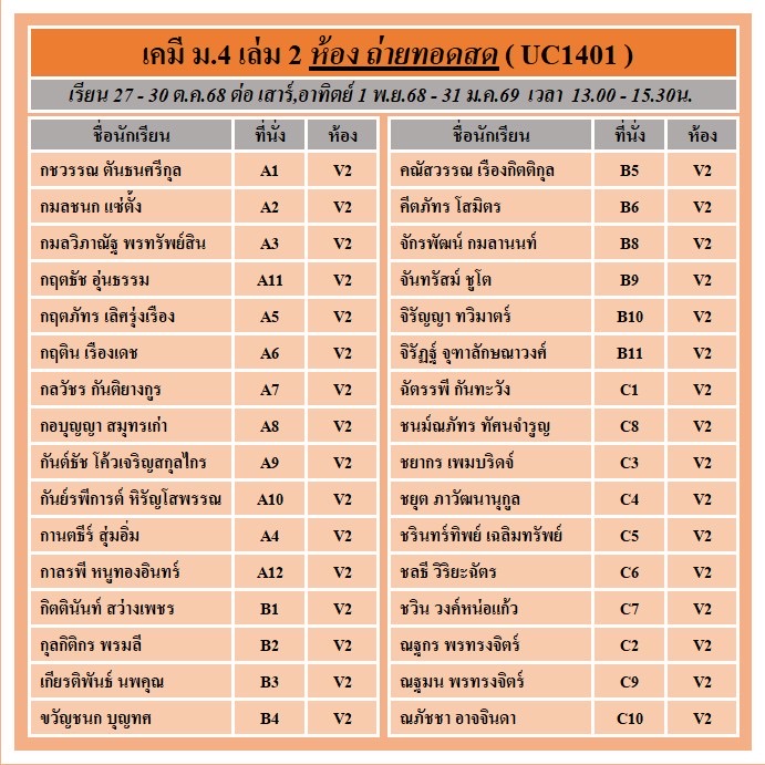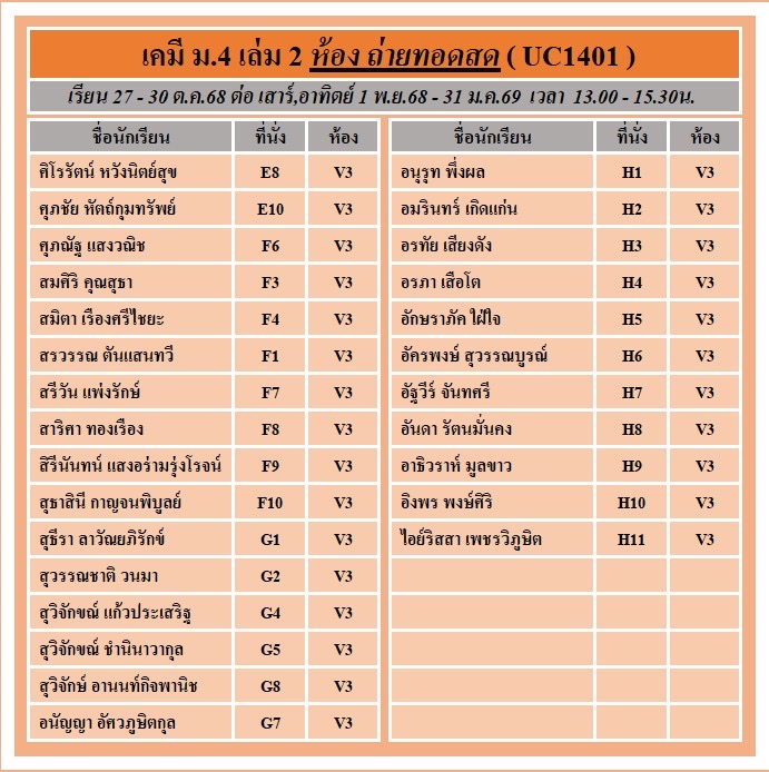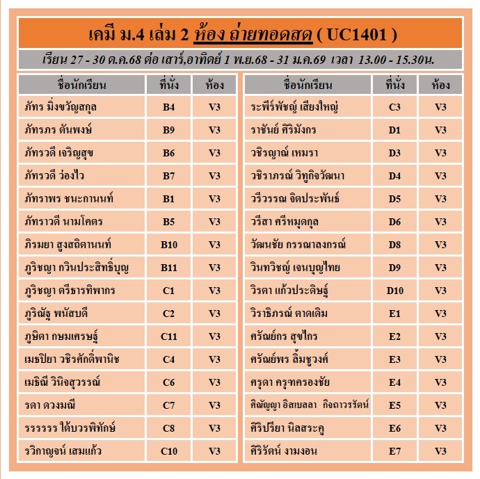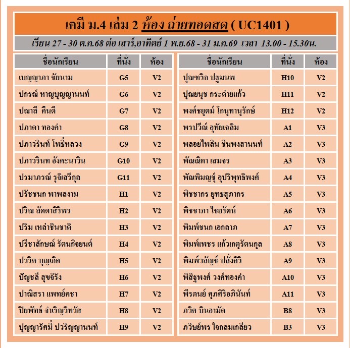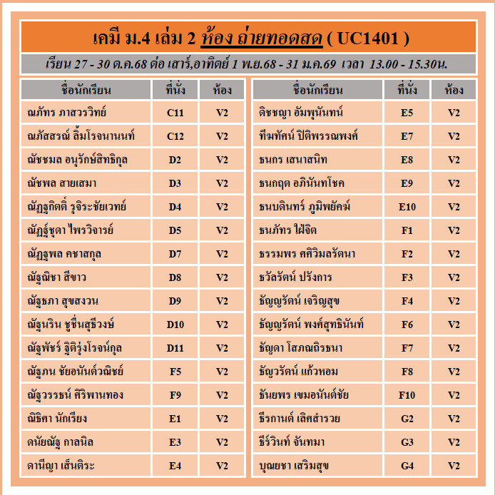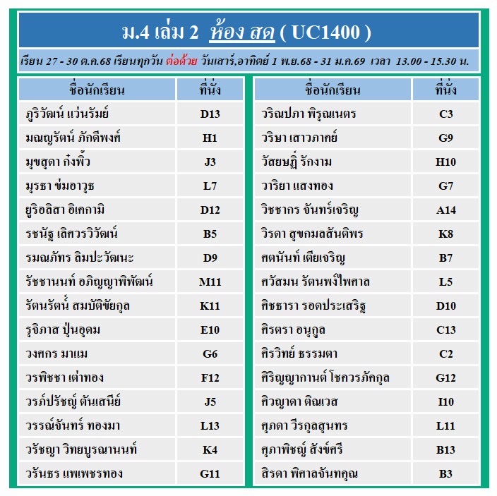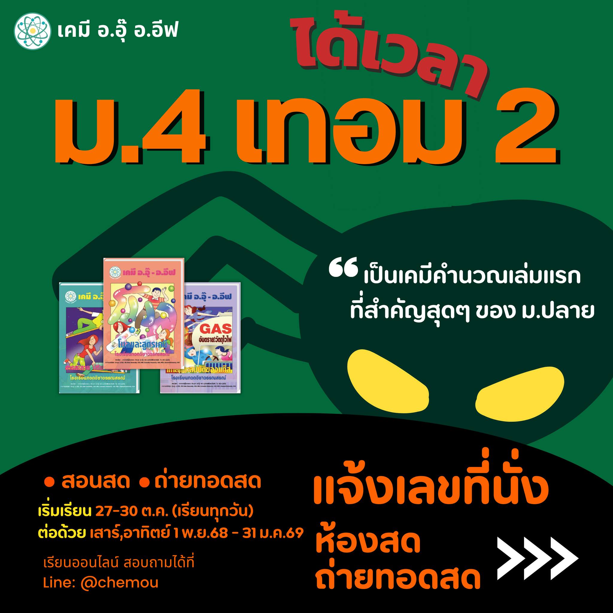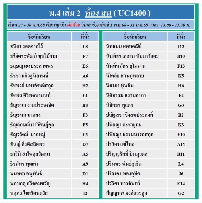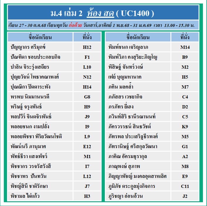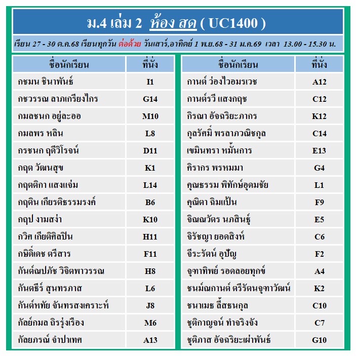 แจ้งที่นั่งรอบสด และ ถ่ายทอดสด คอร์ส ม.4 เล่ม 2