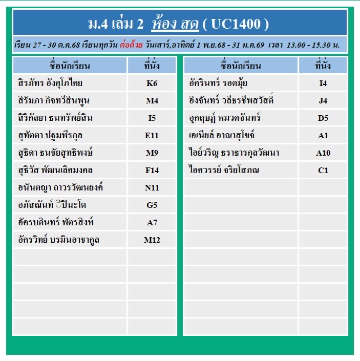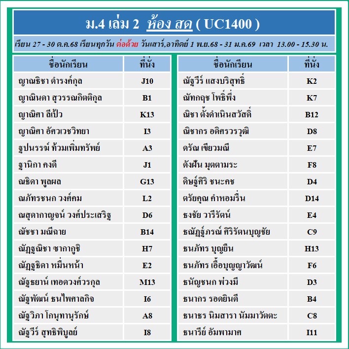 เริ่มเรียน 27 - 30 ต.ค.68