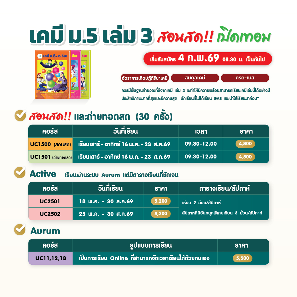 - 4 ก.พ.69 : คอร์ส เคมี ม.5 เล่ม 3