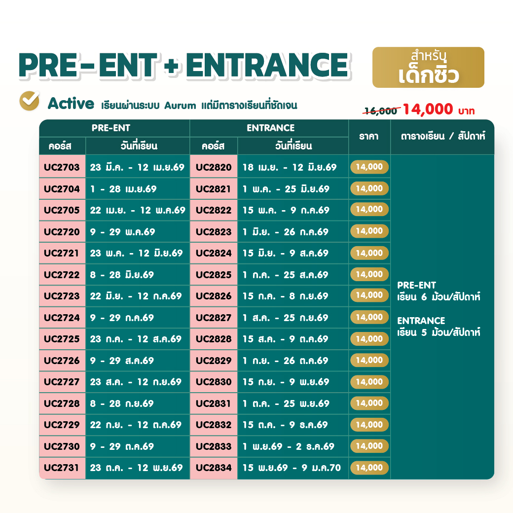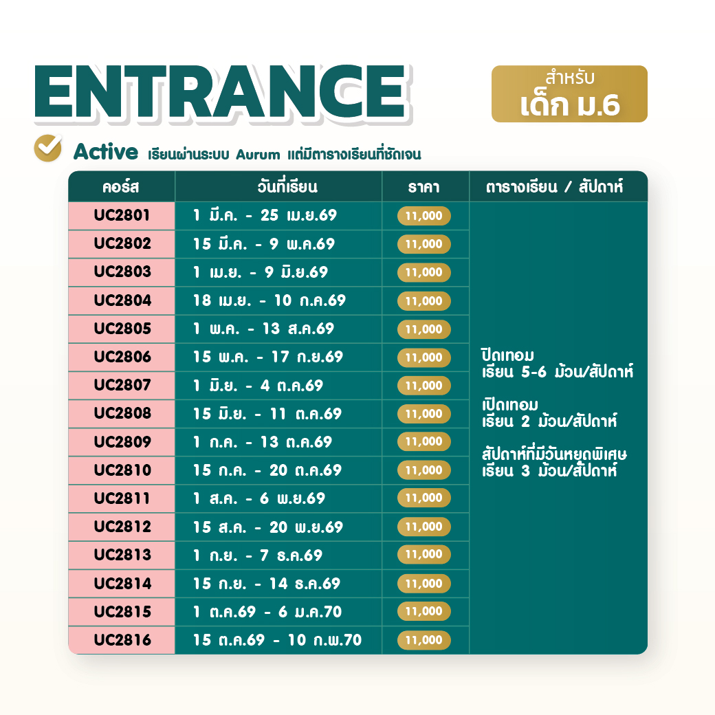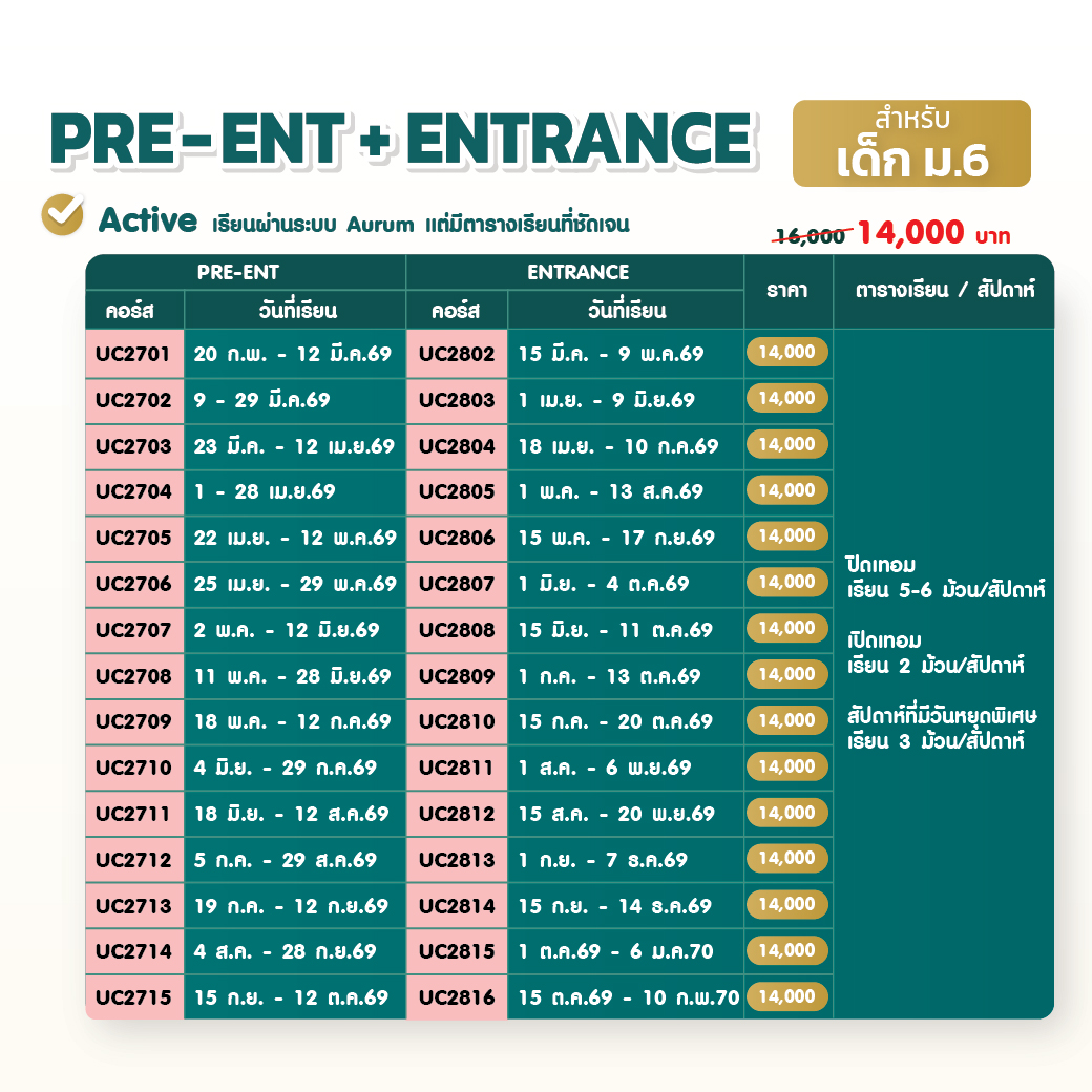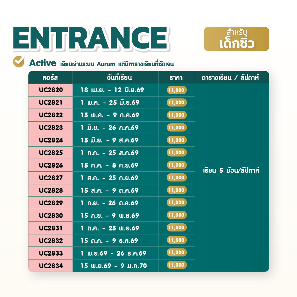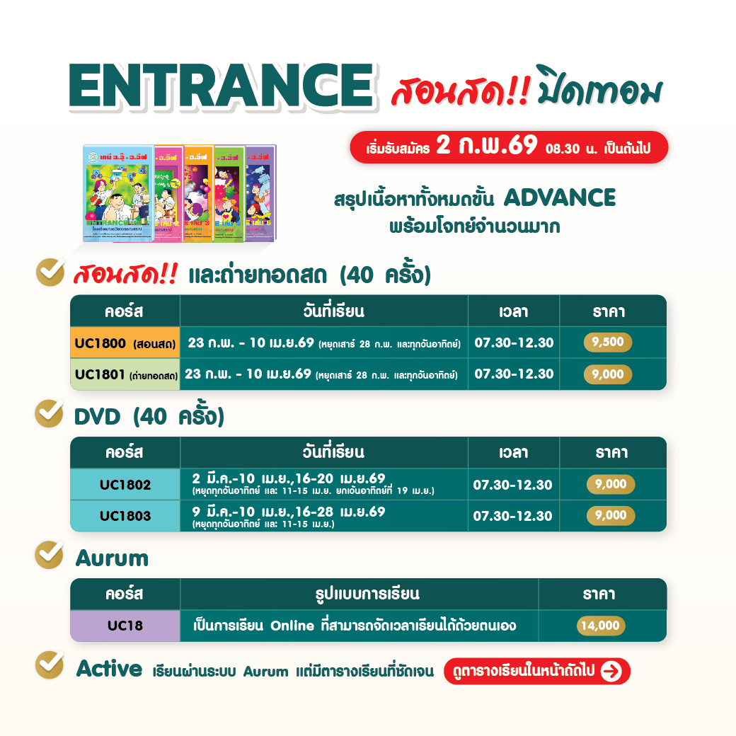 - 2 ก.พ.69 : คอร์ส ENTRANCE (สรุปเนื้อหา Advance + โจทย์จัดเต็ม)