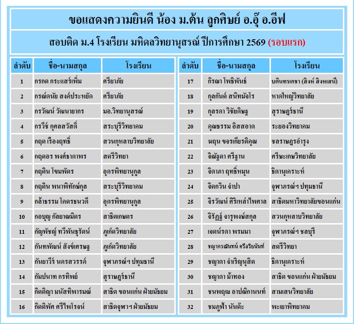 ขอแสดงความยินดีน้องๆ ม.ต้น ลูกศิษย์ อ.อุ๊ อ.อีฟ ทุกคนด้วยนะคะ