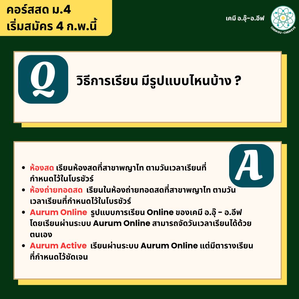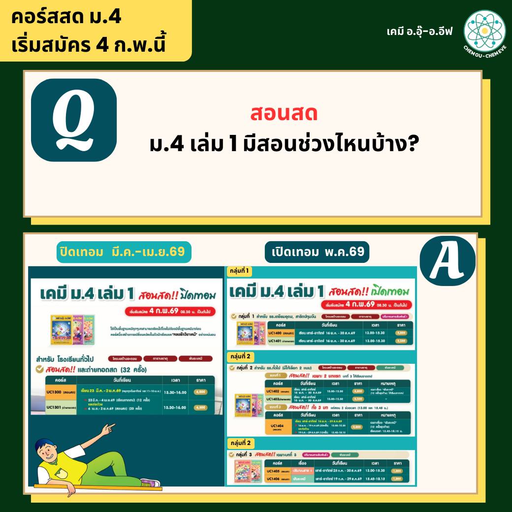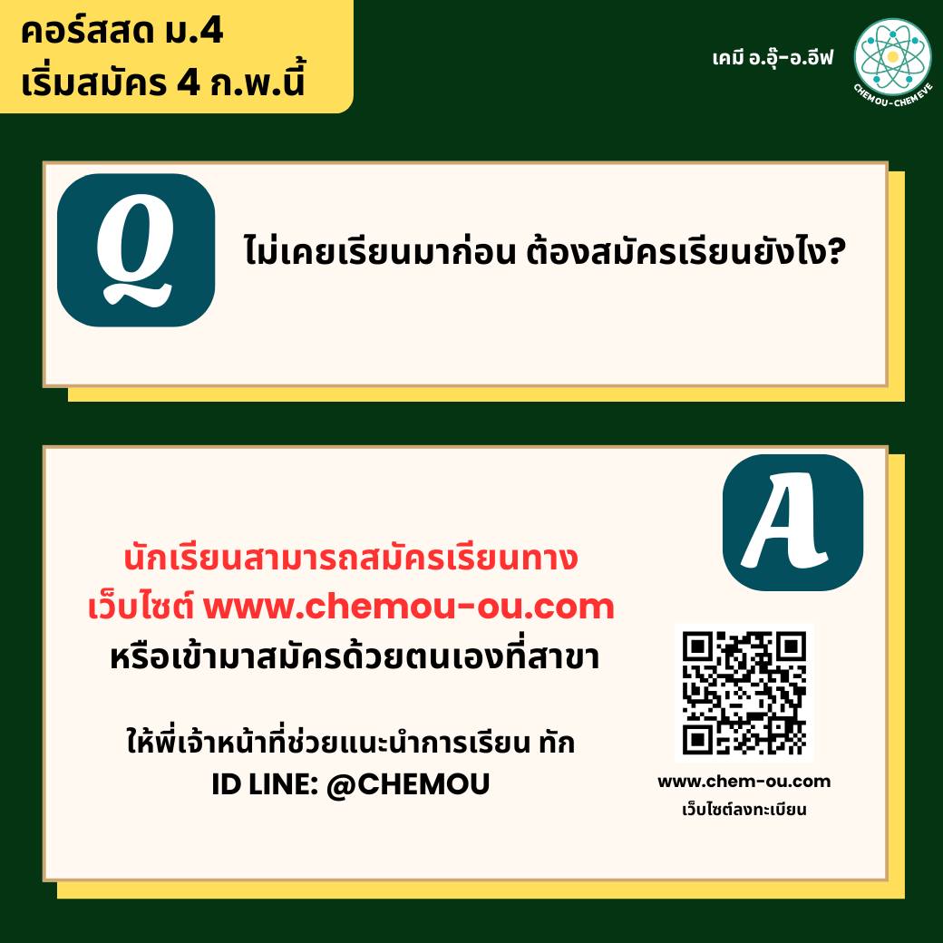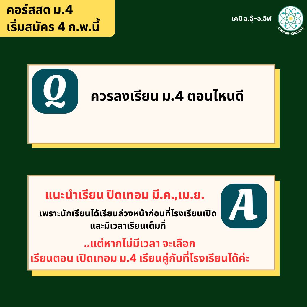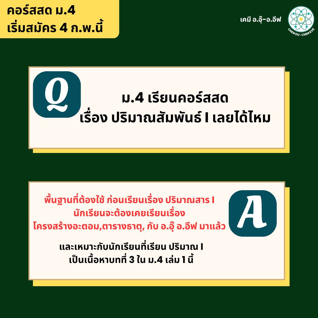 ปิดเทอมนี้ น้องๆ ม.4 สามารถเรียนคอร์สสดเคมีกับอ.อุ๊ และอ.อีฟได้เลยค่ะ