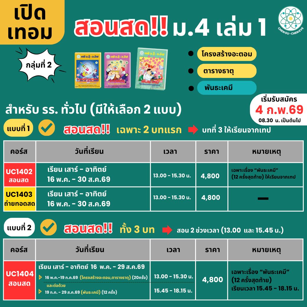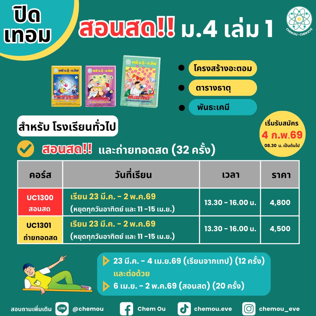 คอร์สสำหรับน้องๆ ที่กำลังจะขึ้น ม.4 ปี 69 นี้นะคะ สอนสด ม.4 ปิดเทอม - เปิดเทอม นะคะ