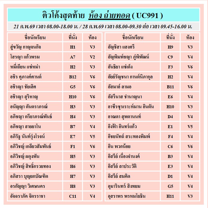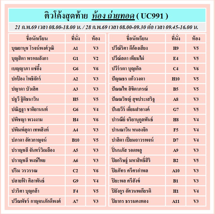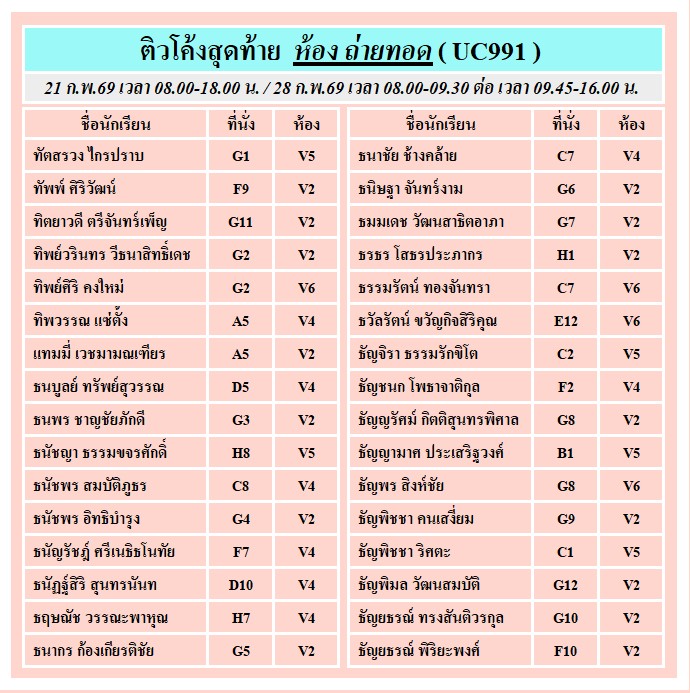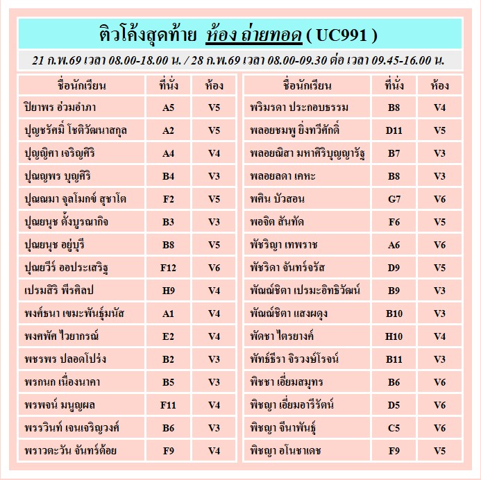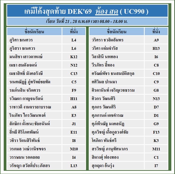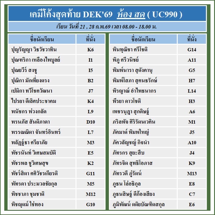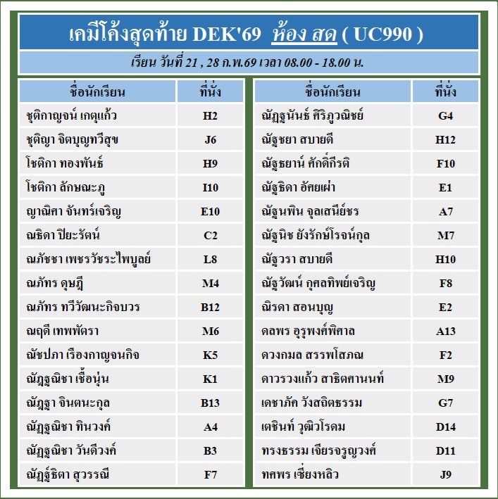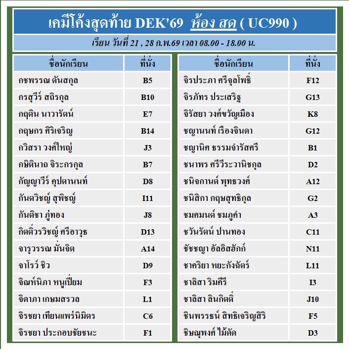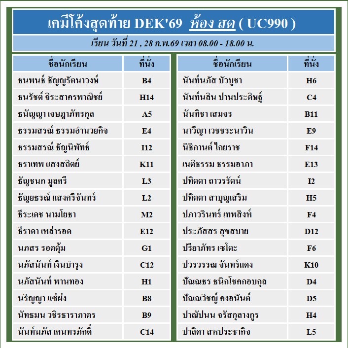 และแจ้งที่นั่งสอบ สำหรับน้องๆ ที่ลงโค้งสุดท้ายห้องสด และถ่ายทอดสดไว้
