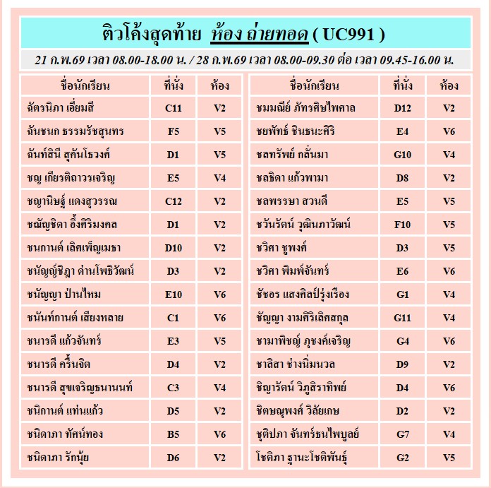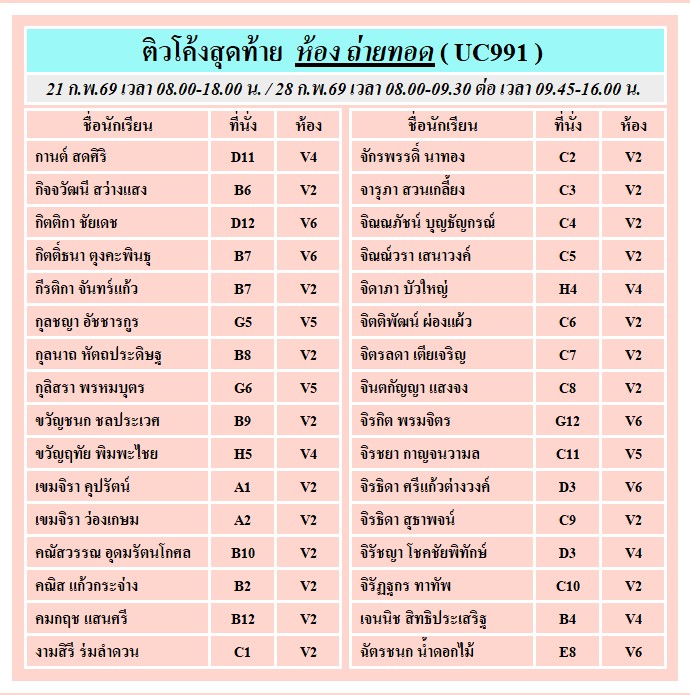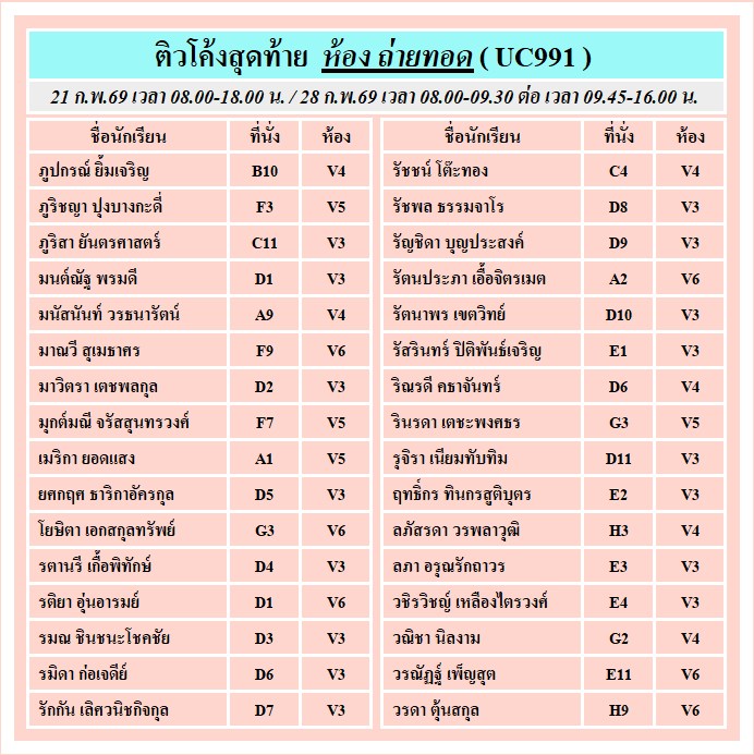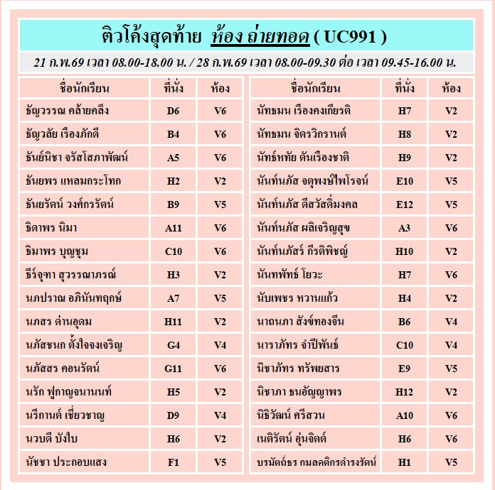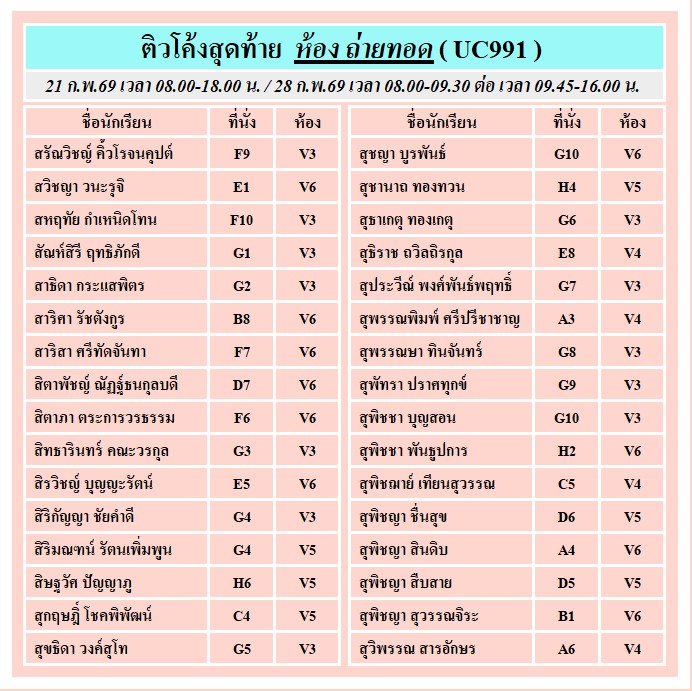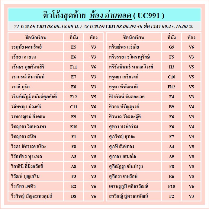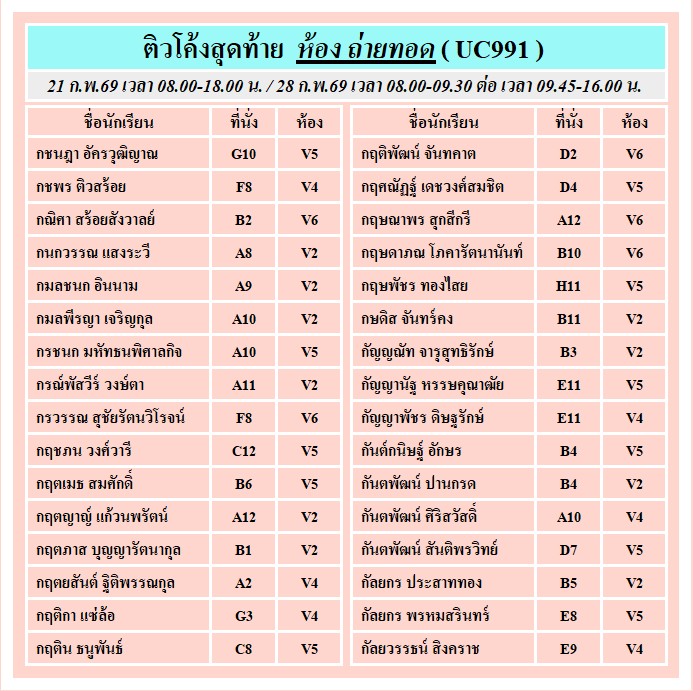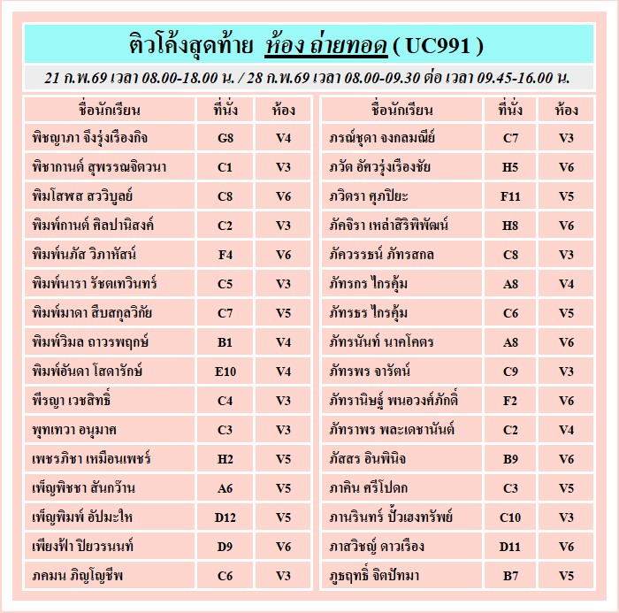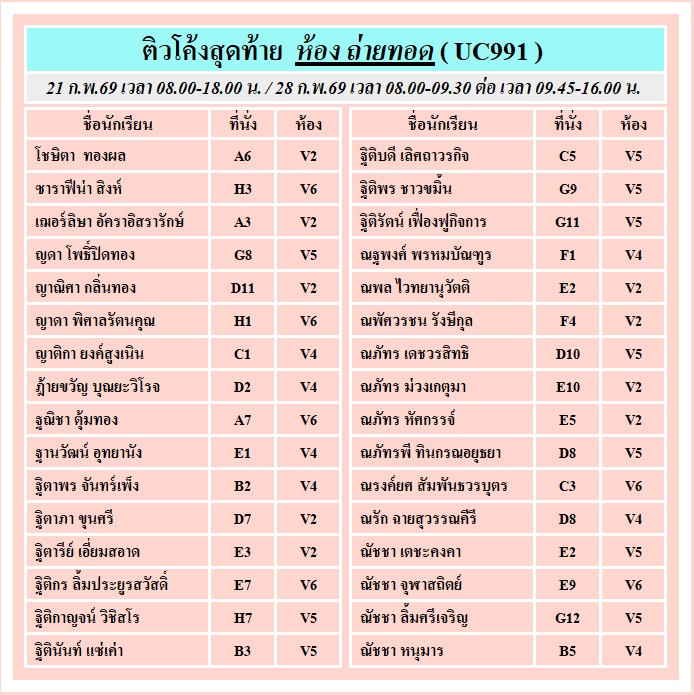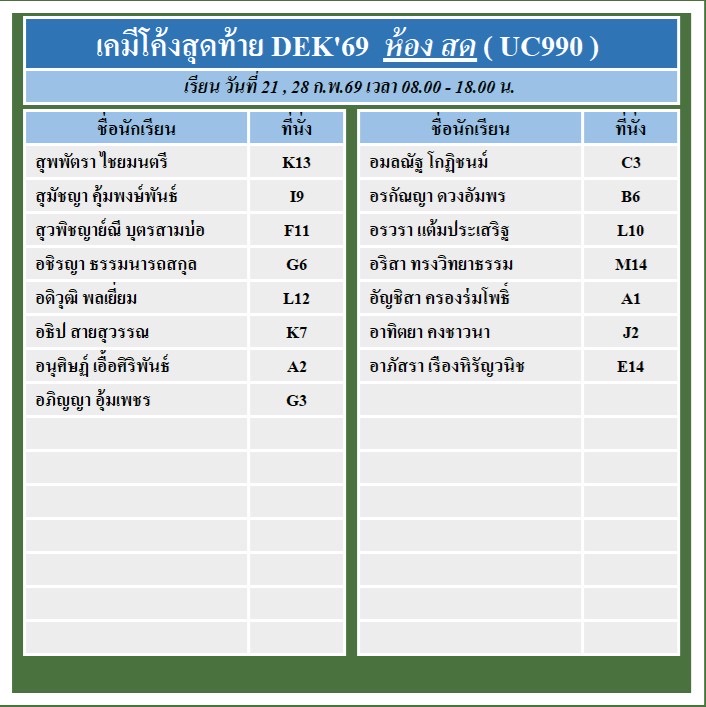 และแจ้งที่นั่งสอบ สำหรับน้องๆ ที่ลงโค้งสุดท้ายห้องสด และถ่ายทอดสดไว้