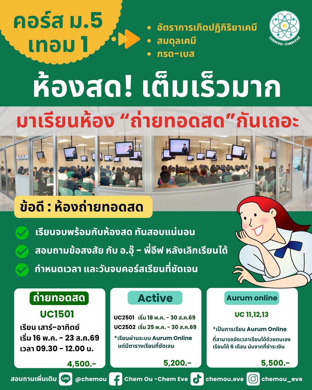 บทความ : คอร์สสด & ถ่ายทอดสด เคมี อ.อุ๊ - อ.อีฟ (ปิดเทอม มี.ค.-เม.ย. / เปิดเทอม พ.ค.2569) เตรียมตัวให้พร้อม! ใครอยากเรียนเคมีให้เข้าใจจริง เพิ่มเกรด หรือเตรียมสอบเข้า ห้ามพลาดรอบนี้!!